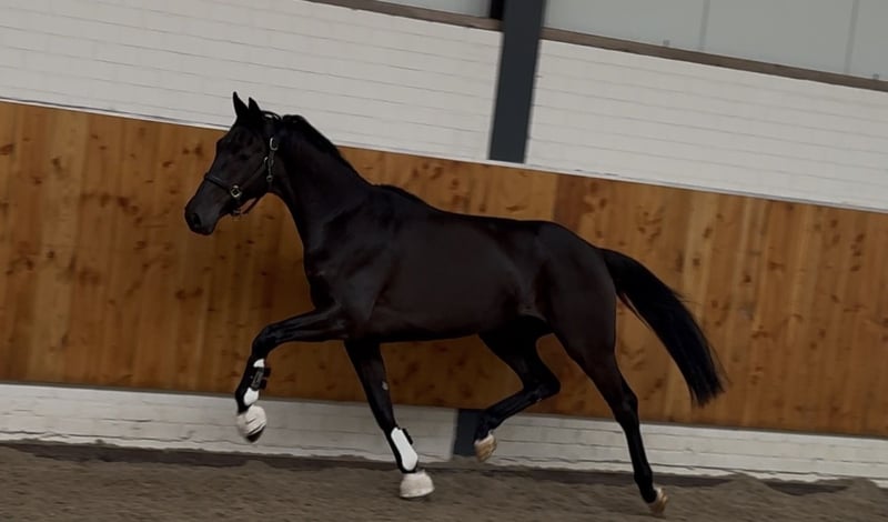 Halfzuster van de zeer populaire goedgekeurde hengst Security (v.Secret) in eigendom van Reesink Horses en gestationeerd 2026 bij Beckmann Hengste in Duitsland. Deze jeugdige merrie komt uit de eerste jaargang van de imponerende hengst Extreme US (v.Escamillo) die zeer goed lijkt te fokken en het zelf geweldig doet in de sport. Aansprekend model , bergopwaarts, hoogbenig en langgelijnd. Modern sportpaard. Beweegt met extreem veel techniek en power! Zeer compleet dressuurpaard met veel voorbeen en een top galop. Merrie met een zeer evenwichtig en rustig karakter, leert snel en is niet nerveus of sensibel. Haar eerste werk aan de longe lijkt zeer veelbelovend. De merrie kan in de 14 dagen na aankoop zadelmak worden gemaakt op verzoek en 2-6x gereden worden a € 65,- per keer. Dit jonge toptalent zal ONLINE geveild worden van 5-7 Mei. Registratie is GRATIS! Bezoek de website voor alle informatie, foto's, meer video's en keuringsrapporten. Bezoek de website via de volgende link, kopieer/plak deze in uw browser: https://dutchhorsetrading.auction/en/collection/60