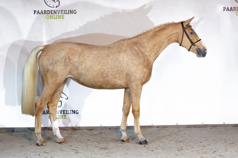 The talented eye-catcher Special Lady TK has inherited the striking coat color of her palomino sire Diamante, who achieved notable results as a showjumper, competing up to the international 1.40m-level with Danish rider Lejse Bramminge. In the second generation, the pedigree gains the valuable genes of Gerardus, a well-jumping son of Carambole who performed at national 1.40m-level with Sophia Lindemann. Further back, the pedigree features the influential Grand Prix horse producers Cassini Gold and Padinus. This direct damline has already produced several international showjumpers, including the 1.50m-level performer Let It Shine (s.Eldorado van de Zeshoek) and the 1.40m-level competing Rhianna (s.Acolino).