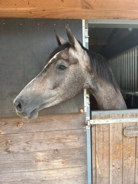 SIGNORA CERINA F Fay is een 3 jarige merrie met een schofthoogte van +/-1.55m. Afgelopen zomer zadelmak gemaakt en pakt dit super op. Onwijs braaf en makkelijk te rijden, vooral voor haar leeftijd! Goed en nuchter karakter, werkwillig en super nieuwsgierig. Ze laat onder het zadel ook een mooie sprong zien. Met de juiste ruiter is het een paard die heel ver gaat komen. Buitenritten is ook geen probleem, alleen en in de groep, verkeersmak, braaf op vreemd terrein en staat netjes op de trailer. Heeft u vragen of interesse? App, bel of mail dan naar onderstaande contactgegevens. +31 682393901 Sleejenneke9@gmail.com