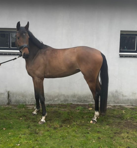 Zum Verkauf angeboten (Englisch unten): Eine freundliche und ehrliche junge Stute aus einer starken, springorientierten Abstammung. Diese braune Stute ist im Juni 2022 geboren und wird voraussichtlich noch etwas wachsen. Sie ist nicht sehr groß; ihre aktuelle geschätzte Stockmaß liegt bei etwa 1,58–1,60 m. Sie trägt ein kleines Sternchen auf der Stirn und hat vier weiße Fußzeuge. Die Stute ist kürzlich zügelfertig gemacht worden und hat bereits einmal frei gesprungen, wobei sie eine gute Einstellung und Technik gezeigt hat. Derzeit wird sie ordnungsgemäß longiert. Aufgrund fehlender eines passenden Sattels vor Ort kann sie momentan nicht geritten werden. Abstammung: Mans x Indoctro x Mister Concorde Dieses Pedigree steht für Qualität, Vermögen und eine gute Einstellung: Mans (v. Burggraaf) hat selbst auf internationaler Ebene gesprungen und ist bekannt für seine Vererbung von Vermögen, Rittigkeit und einer angenehmen Mentalität. Indoctro ist ein bewährter Top-Vererber mit zahlreichen internationalen Springpferden und Championatsteilnehmern, geschätzt für seine Technik und Zuverlässigkeit. Mister Concorde bringt Blut, Schärfe und athletisches Vermögen mit und hat mehrere erfolgreiche Sportpferde hervorgebracht. Diese Stute ist eine interessante zukünftige Sport- oder Zuchtperspektive für jemanden, der ein junges Pferd weiter ausbilden möchte. Sie hat noch ausreichend Zeit, sich sowohl körperlich als auch mental weiterzuentwickeln. Besichtigungen nach Vereinbarung Für weitere Informationen oder Fragen rufen Sie bitte an unter +31 6 53929991 (Theo Reijnen) oder senden Sie eine E-Mail an theoreijnen@outlook.com