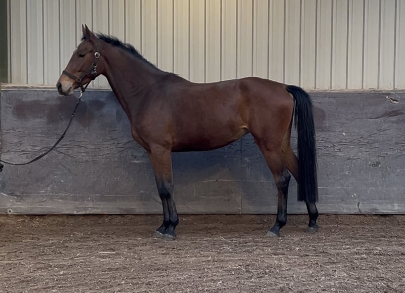 From our own breeding, we are pleased to offer this lovely 3.5-year-old mare. So’Brilliantha has already been extensively handled and is ready to continue her training. She is familiar with lunging in a bridle and saddle. She jumps freely and easily over small obstacles, demonstrating a good attitude. Her dam line includes many successful sport horses; her mother, Gentiane HBC (by Cantos), is a half-sister of the internationally competing 1.45m-classified Daytona (by Dantos HBC), who has already produced a second-phase stallion. Through the Grand Prix stallion Memphis, this lineage traces back to the mare Bantha, who is also the foundation of the international 1.45m horses Kadans Fortuna and Genereux Fortuna, as well as the KWPN-approved stallion Orion Fortuna. One of the most prominent representatives of this line is the highly successful Grand Prix winner Creedance by Kent Farrington, who, like Gentiane HBC, descends directly from the Nimmerdor daughter Samantha. In addition to her sporting potential, So’Brilliantha is also of interest for breeding purposes. https://horsetelex.nl/horses/pedigree/2358573/so-brilliantha-van-de-blauwendraad For more information and videos: +31 6 12309595 VAT horse