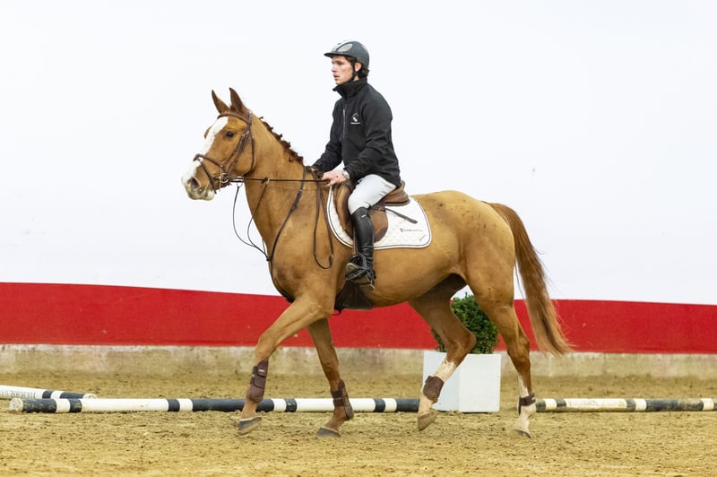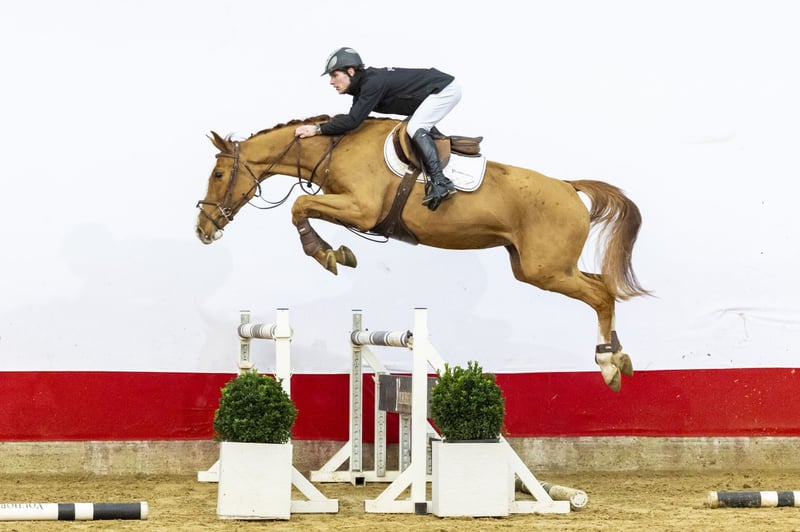 Stacks by Roosberg will turn four years old in 2026 and has only been under saddle for a few weeks. He is clearly still green in his work, but already shows a very good mentality. This is not a horse for a beginner amateur to ride independently right away. He needs some time to build confidence and routine under saddle and to get to know his rider. When jumping along the wall under the rider, he clearly shows where his quality lies: we cannot build high enough and he jumps it with ease. He shows a lot of push, scope and quality, combined with a good attitude. This confirms that you are truly buying a showjumping horse. Our advice is to keep him in professional training for about one more month with a breaking-in rider. This can also be arranged by the seller/breeder. This will make him calmer and easier to handle, also with a view to a less experienced rider in the future. The foundation is there: mentality, scope and quality. The rest is education and time. Sire Arezzo VDL (Chin Chin x Constant) competed himself at 1.60m level and is a proven international sire. His offspring include VDL Edgar M (1.65m), Farezzio (1.65m) and Equine America Harwich VDL (1.65m). A sire line known for scope, reflexes and mentality. Dam Kaloutina van het Maaskantje (Grand Slam VDL) competed at 1.25m level and comes from an exceptionally strong performance family. This damline has produced many horses competing at 1.30m to 1.45m, including Galoutina C (1.45m CSI), Lightspot van het Maaskantje (1.45m, winner in the USA), Itina (1.45m, CSN USA), Metina van het Maaskantje (1.35m) and Liarado van het Maaskantje (1.30m), as well as several internationally placed horses. The further damline through Aretina M (Indoctro, 1.35m) and Retina M (Cash) confirms the consistent sport production of this family. Stacks by Roosberg combines top pedigree, scope and mentality. A young horse that still needs education, but already clearly shows he is built for the sport of showjumping.