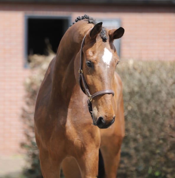 Royale KWPN dressuurmerrie met een aansprekend model en veel beweging. Deze merrie komt rechtstreeks van haar fokker. Ze is dan ook nog groen en onbeleerd. Wel leert ze snel. Ze beschikt over een zeer interessant dressuurpedigree. Bij interesse graag bellen of appen. Telefoon: +31(0)643197337 of +31(0)648271956