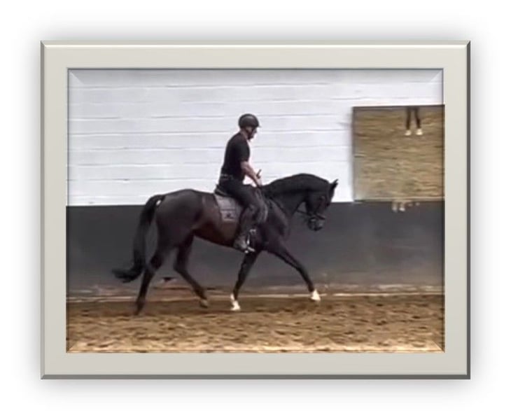 Elegante 3-4 jarige bruine merrie met 2 witte sokken vooraan. Sky is zadelmak, heeft mooie gangen en kan al goed afgebogen lopen. Sky is sociaal in de omgang en werkt graag.