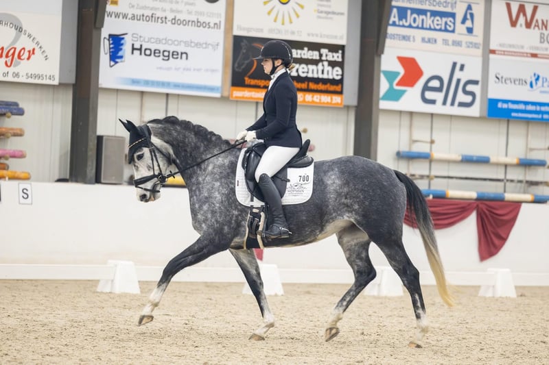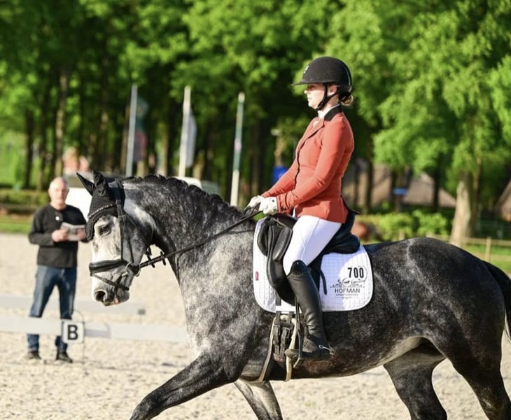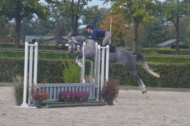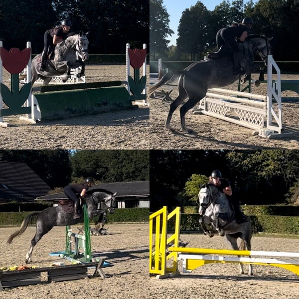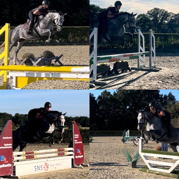 Sehr süßes, unkompliziertes und talentiertes Pferd. Als 3-Jährige direkt vom Züchter gekauft, stammt sie von einem Grand Prix-Dressurreiter und einem 1,35 m Springreiter ab. Sie hatte also den besten Start und eine hervorragende Ausbildung. Wir glauben, dass sie sehr gut als Hunter-/Equitation-Pferd geeignet ist, aber natürlich auch als Dressurpferd. - Aktuell auf M1-Niveau in der Dressur im Einsatz (Siegerin der regionalen Meisterschaftsqualifikation L2). Kennt Schritt-Pirouetten, Schulterherein, Travers, einfache und fliegende Wechsel, Halben Pass usw. - Mehrere Male bei Springturnieren über 80/90 cm gestartet. War bei Hunter-Kliniken und Ausritten. Sie ist nicht schreckhaft bei schwierigen Sprüngen. - Hat bereits viel Erfahrung für ihr Alter, Sie können sie selbst zu Turnieren mitnehmen. - Sie passt sich dem Reiter und den Anforderungen an. Möchten Sie einen auffälligen Trab? Das wird sie Ihnen geben. Möchten Sie sie in einem ruhigen Tempo, einfachen Trab/Galopp mit langen Zügeln reiten? Auch das ist für sie in Ordnung. Sie liebt es, in den Wald zu gehen. - Saubere Röntgenbilder, keine (Stall-)Vices, kein Stutenverhalten. - Standort im Norden der Niederlande - Sie muss noch nicht verkauft werden und wird nur in die besten Hände gegeben. - Ganze Geschichte bekannt. Ich habe auch ihre Halbschwester aus derselben Mutter gekauft, weil ich dieses Pferd so mochte.