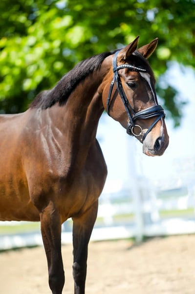https://esha.horse/Auctions/Item/5513 Phinah Di Primavera DXS, een fraaie merrie van High Five x Stravinsky, is niet alleen een lust voor het oog maar beschikt ook over drie correcte, soepele gangen. Ze werd als veulen aangekocht en haar volledige geschiedenis is volledig bekend. Phinah heeft alle tijd gekregen om rustig uit te groeien en bracht vorig jaar een veelbelovend veulen, waardoor ze eveneens zeer interessant is voor de fokkerij. Recent is zij zadelmak gemaakt. Hoewel ze nog groen is onder het zadel, pakt ze het werk opvallend goed op. Juist daarom is ze op dit moment nog niet geschikt voor de echte beginner, maar ze toont veel inzet en talent. Onder het zadel heeft ze inmiddels ook al een klein sprongetje gemaakt. In de omgang is Phinah een uitzonderlijk lieve, betrouwbare merrie: sociaal naar andere paarden, braaf aan de hand en momenteel nog zonder ijzers. Ze heeft geen stalgebreken en is zowel klinisch als röntgenologisch gekeurd voor de sport. Een schitterende merrie met potentie voor zowel sport als fokkerij. Phinah Di Primavera DXS, a beautiful mare by High Five x Stravinsky, is not only a pleasure to look at but also possesses three correct and supple gaits. She was purchased as a foal, and her full history is completely known. Phinah has been given all the time she needed to mature and delivered a very promising foal last year, making her equally interesting for breeding. She has recently been backed. Although she is still green under saddle, she is progressing remarkably well. For this reason, she is not yet suitable for a true beginner, but she shows great willingness and talent. She has already made a small jump under saddle. In handling, Phinah is an exceptionally sweet and reliable mare: social with other horses, well-behaved on the lead, and currently still barefoot. She has no stable vices and is both clinically and radiographically vetted for sport. A stunning mare with potential for both sport and breeding. Phinah Di Primavera DXS, une magnifique jument par High Five x Stravinsky, est non seulement agréable à regarder mais possède également trois allures correctes et souples. Achetée pouliche, toute son histoire est parfaitement connue. Phinah a eu tout le temps nécessaire pour grandir tranquillement et a donné l’an dernier un poulain très prometteur, ce qui la rend également intéressante pour l’élevage. Elle a été débourrée récemment. Bien qu’elle soit encore verte sous la selle, elle progresse remarquablement bien. Pour cette raison, elle n’est pas encore adaptée à un véritable débutant, mais elle montre beaucoup de bonne volonté et de talent. Elle a déjà effectué un petit saut sous la selle. Au quotidien, Phinah est une jument exceptionnellement douce et fiable : sociable avec les autres chevaux, sage en main et actuellement encore sans fers. Elle n’a aucun vice d’écurie et a été à carreaux cliniquement et radiographiquement pour le sport. Une jument superbe avec du potentiel pour le sport comme pour l’élevage. Phinah Di Primavera DXS, eine wunderschöne Stute von High Five x Stravinsky, ist nicht nur ein echter Hingucker, sondern verfügt auch über drei korrekte und geschmeidige Grundgangarten. Sie wurde als Fohlen gekauft, und ihre gesamte Vorgeschichte ist vollständig bekannt. Phinah hatte alle Zeit, sich in Ruhe zu entwickeln, und brachte im letzten Jahr ein vielversprechendes Fohlen zur Welt, was sie ebenfalls interessant für die Zucht macht. Sie wurde vor Kurzem angeritten. Obwohl sie unter dem Sattel noch grün ist, entwickelt sie sich sehr gut. Aus diesem Grund ist sie derzeit noch nicht für einen absoluten Anfänger geeignet, zeigt jedoch viel Einsatz und Talent. Unter dem Sattel hat sie bereits einen kleinen Sprung gemacht. Im Umgang ist Phinah eine außergewöhnlich liebe und zuverlässige Stute: sozial zu anderen Pferden, brav an der Hand und momentan noch barhuf. Sie hat keine Stallmängel und ist sowohl klinisch als auch röntgenologisch für den Sport geprüft. Eine beeindruckende Stute mit Potenzial für Sport und Zucht.
