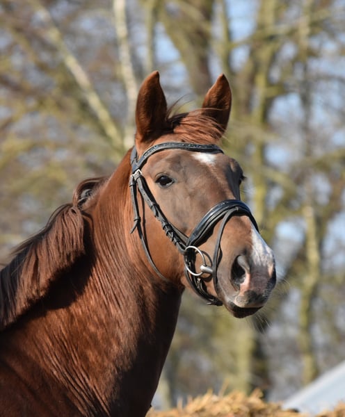 Vierjährige Fuchsstute – Cum Laude x Hennessey x Wellington Gut gebautes Fuchsstute, geboren im Juni 2021, mit einer Schulterhöhe von ca. 166 cm. Die Stute verfügt über drei korrekt gerittene Gänge. Sie ist vertraut mit Longieren und Grundhandling, ist jedoch noch etwas grün. Sie wurde bei uns geboren und wurde stets liebevoll und korrekt gepflegt. Aufgrund ihrer Natur ist sie eine sensible und misstrauische Stute. In spannenden Situationen kann sie unsicher werden. Die Stute ist sozial im Herdenverband, frei von Stallgebrechen und besitzt einen Pass. Sie ist regelmäßig geimpft und entwurmt. Körungen sind erlaubt, Kosten trägt der Käufer. Verkaufspreis 4.750 € Besichtigung in Garyp möglich. Für weitere Informationen: 0610764612