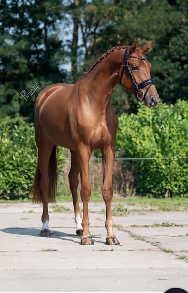 Ranamiek - Een merrie vol talent en charme Stamboom: Fynch Hatton x Chagall Schofthoogte: ongeveer 1.68 m (groeit nog steeds) Leeftijd: 4 jaar We zijn verheugd om Ranamiek voor te stellen - een uitzonderlijke, zeer getalenteerde 4-jarige KWPN-merrie die indruk maakt met haar elegantie, haar potentieel en haar fantastische rijdbaarheid. Dit is wat Ranamiek speciaal maakt: Bewegingskwaliteit: Met drie uitstekende basisgangen en een harmonieus bewegingsverloop is Ranamiek een echte blikvanger - of het nu in de piste is of later in de dressuurpiste. Karakter: Ze is altijd vriendelijk, sterk en meewerkend - ideaal voor ruiters die op zoek zijn naar een paard met veel hart. Rijdbaarheid: Ondanks haar jonge leeftijd is ze al prettig te rijden, of het nu na een korte opwarmfase is of direct na het opstijgen - zelfs zonder longeren. Klaar om te gaan: Ranamiek is onlangs volledig gekeurd voor de sport (inclusief rug en nek) en is klaar om haar carrière te beginnen. Locatie: Ranamiek is te bezichtigen in Richwiller (Frankrijk - slechts 35 minuten van de Zwitserse grens). Heb je interesse? Neem voor meer informatie, video's of het maken van een afspraak contact met ons op via WhatsApp: +41 759 29 48. Let op: We vragen een vergoeding van €30 voor de presentatie en de proefrit, die uiteraard wordt verrekend met een eventuele aankoop. Ontdek je droompaard met Ranamiek - kwaliteit, talent en charme in perfectie!