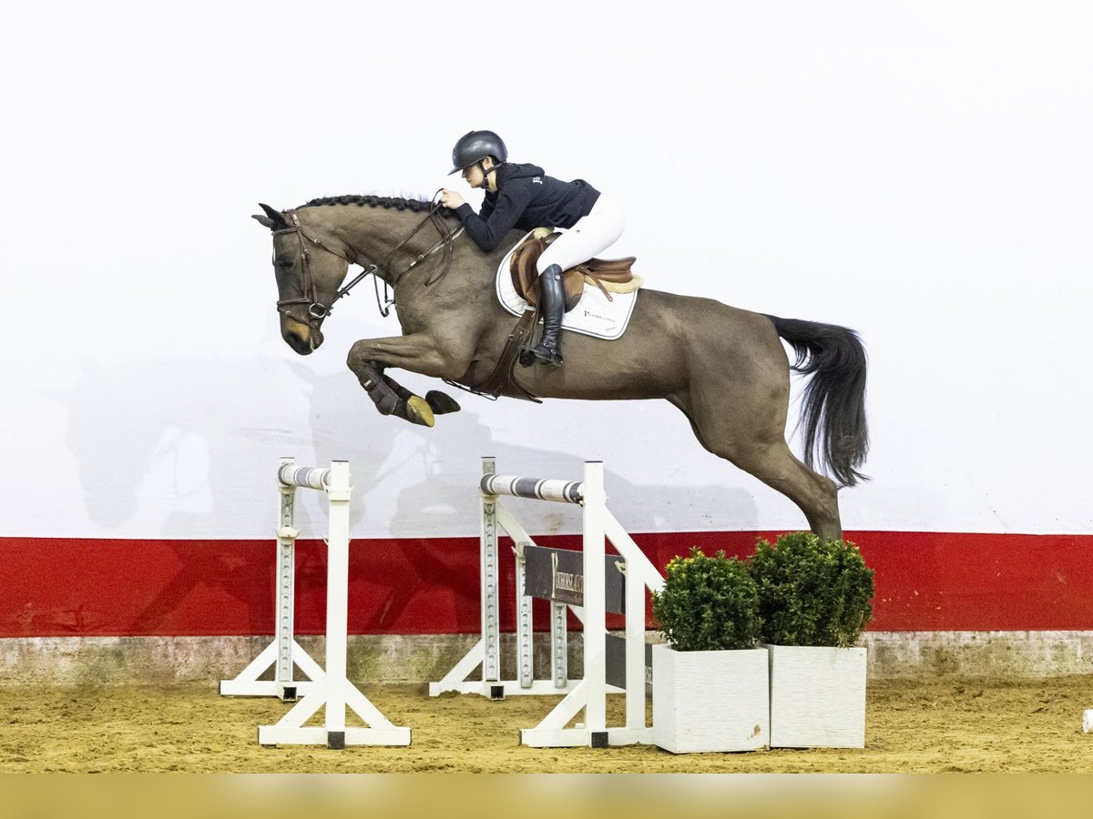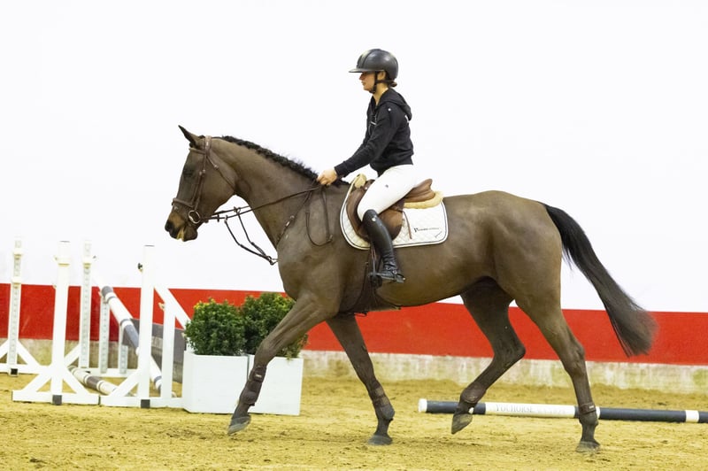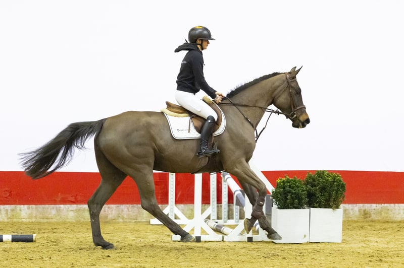 This mare is turning five this year. She first had a foal and has now been under saddle for two months. She is taking up the work very well and does everything with ease. She jumps with a lot of scope and in a very correct way. She comes nicely uphill towards the rider and works properly from behind. Her hindleg technique is strong and she is quick off the ground. We have also seen her free jump, where she showed a lot of quality and power. The higher we built the fences, the better she performed. She jumps consistently and stays in balance. She gives the rider a very good feeling. Has a lovely character, is willing to work and always tries her best. Amateur-friendly, but certainly also suitable for a professional rider. In our opinion, a horse with a lot of potential that can be developed towards a higher level.