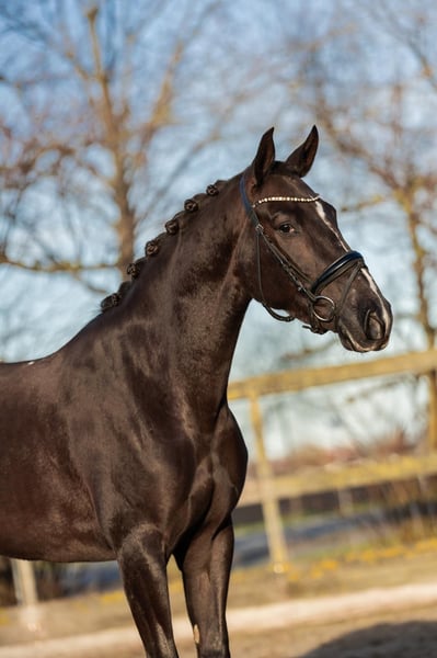 PRE meets KWPN with a Big Heart This 5-year-old mare (approximately 15.2 hh) combines the best of two worlds: Spanish calmness meets sportive openness. A dark chestnut with an honest expression, a calm temperament, and a character that immediately inspires trust. She is very well-behaved, balanced, and absolutely kid-friendly – a true E-Pony with top-quality conformation and movement. Whether in daily handling or under saddle: 👉 straightforward 👉 confident 👉 pleasantly calm Perfect for children, teenagers, or smaller adults seeking a safe, loving, and reliable horse.
