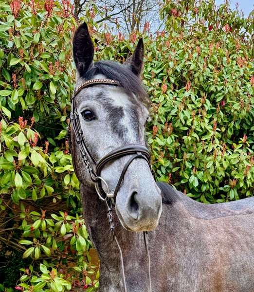 Zum Verkauf steht eine schicke 6-jährige Schimmelstute nach ClassicoTN x Emilion x Hemingway Sie wurde mitte 4-jährig schonend angeritten. Mitte 5-jährig ist sie dann erstmals auf Turnieren unterwegs gewesen und wurde bis dato bis 120cm ausgebildet. Bis 115cm sammelte sie auch mehrmalige Nullrunden und Platzierungen. Im Umgang sowie beim Reiten sehr, sehr brav und simpel zu Händeln. Somit ist sie auch ideal für Teenager und Turniereinsteiger. Hufschmied und Hängerfahren nimmt sie mit selbstverständlicher Ruhe. Ihr soziales Verhalten ist absolut unkompliziert und freut sich immer auf neue Gesellschaft. Allergien, Ekzem, etc. keine vorhanden. Lediglich muss auf eine mehrfach aufgeteilte Fütterung geachtet werden. Röntgen von 05/25 sind vorhanden- ohne Befund. Die Stute kann gerne nach Vereinbarung besichtigt und probegeritten werden. Dafür ist eine Gebühr von €30,- zu entrichten. Kontaktdaten siehe unten.