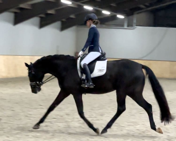5-letnia elitarna klacz o doskonałej linii rodowodowej! Niezawodna klacz z dużym zaangażowaniem pracy! Zawsze świetnie współpracuje i ma dużo energii. W zeszłą zimę, po zaledwie 10 tygodniach jazdy, przeszła bardzo dobrą próbę klaczy z ocenami podstawowych chodów do 8,5! Chód stęp 8,5, kłus 8,5 i galop 8,0. Natychmiast została mianowana na klacz elitarną w księdze KWPN. Jest również bardzo interesująca z hodowlanego punktu widzenia! Ta klacz jest siostrą półkrwi do zarejestrowanego ogiera So Rafiq od So Perfect. W tym lecie miała swoje drugie źrebię, które zostało odstawione w listopadzie. Obecnie jeszcze nie jest użytkowana pod siodłem, ale można ją już pokazać na lonży. Klacz przeszła pełne badanie weterynaryjne bez istotnych zastrzeżeń. Na życzenie dostępne.
