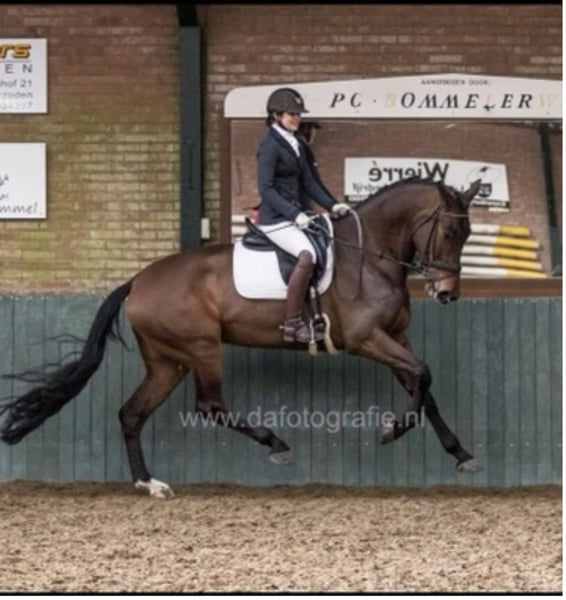 Te koop: 5-jarige elite merrie met toekomst en topkarakter Met pijn in het hart bieden wij deze talentvolle 5-jarige elite merrie te koop aan. Ze is een kwaliteitsvolle merrie met drie goede gangen, een fijne werkinstelling en veel aanleg voor de sport. Deze zomer behaalde ze 81 punten op de IBOP, wat haar potentie duidelijk onderstreept. Ze is nuchter en eerlijk, fijn te rijden en ook geschikt voor de overstap van pony naar paard. Naast haar kwaliteiten in de baan vindt ze het ook heerlijk om af en toe een ontspannen rondje door het bos te maken. Een paard dat niet alleen talent heeft, maar ook plezier brengt. We hebben haar zelf gefokt en met veel zorg en liefde opgeleid. Helaas kunnen we niet alles aanhouden, dus zoeken we een plek waar ze verder kan uitgroeien tot haar volle potentieel. Ze valt in het hogere segment. Heb je interesse of wil je meer weten? Neem gerust contact op voor informatie, een video of om een afspraak te maken. For Sale: 5-Year-Old Elite Mare with Talent and Top Character With a heavy heart, we are offering this talented 5-year-old elite mare for sale. She is a high-quality horse with three good gaits, a willing attitude, and a lot of potential for sport. This summer, she scored 81 points on her IBOP, clearly showing her promise for the future. She is honest and easy to ride, making her also suitable as a transition from pony to horse. In addition to her abilities in the arena, she also enjoys going for a relaxed hack in the woods now and then a horse that brings both talent and joy. We bred and raised her ourselves with great care and attention. Unfortunately, we can't keep them all, so we’re looking for a new place where she can continue to develop to her full potential. She is offered in the higher price segment. Interested or want to know more? Feel free to contact us for more information, a video, or to schedule a viewing.