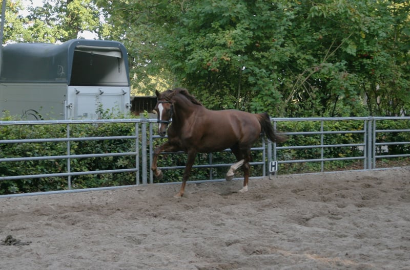 Zu verkaufen: 5-jährige Fuchsstute; Die Stute namens Pico-bala wurde von uns gezüchtet und wurde zu Beginn des Jahres unter dem Sattel ausgebildet. Letzten Sommer wurde sie weitergeritten und nimmt die Arbeit gut an und hat Freude daran. Es wurde auch viel Bodenarbeit mit Pico gemacht. Sie hat Erfahrung im Straßenverkehr und hat Ausritte gemacht. Pico hat einen menschenbezogenen Charakter, ist ein fröhliches Pferd und wird gerne beschäftigt. Die Abstammung ist Kane BFT x Atleet x Vaandager HBC. Die Mutterlinie ist die bekannte Landsvrouwe-Linie. Sie wurde röntgenologisch untersucht.