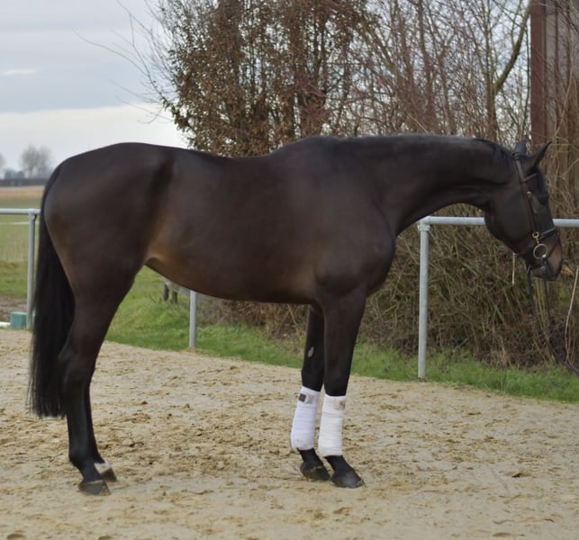 Discover your ideal partner in show jumping: our nearly black mare, born in 2020! This charming mare impresses not only with her striking color but also with her gentle nature. She is perfect for children and offers safe, reliable handling, while also demonstrating impressive jumping ability. ### Features: - **Almost black coat color:** Her eye-catching appearance makes her a real eye-catcher in the stable and on the course. - **Child-friendly:** This mare is very well-behaved in handling and ideally suited for young riders. - **Excellent jumping quality:** She exhibits remarkable talent in jumping, impressing with her technique and bravery. - **Easy to ride:** She responds sensitively to aids and is suitable for both beginner and advanced riders. ### Special Offer: Secure a **5% discount** on the sale price with immediate pickup! ### Test opportunity: Take the chance to test this talented mare for one week! Experienced trainers can accompany her during the trial week, and you have the option to combine it with riding lessons. Please note that a trial fee applies, which is not deducted from the purchase price. ### Trial riding: See for yourself what she can do! You are welcome to come and view her. The cost for a pre-ride or trial session is **€30 per person**. Come by and experience the horse that will win your heart!