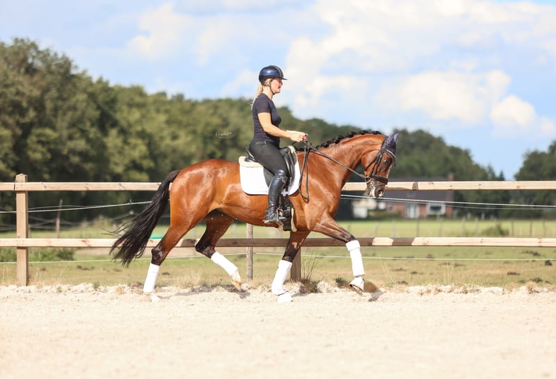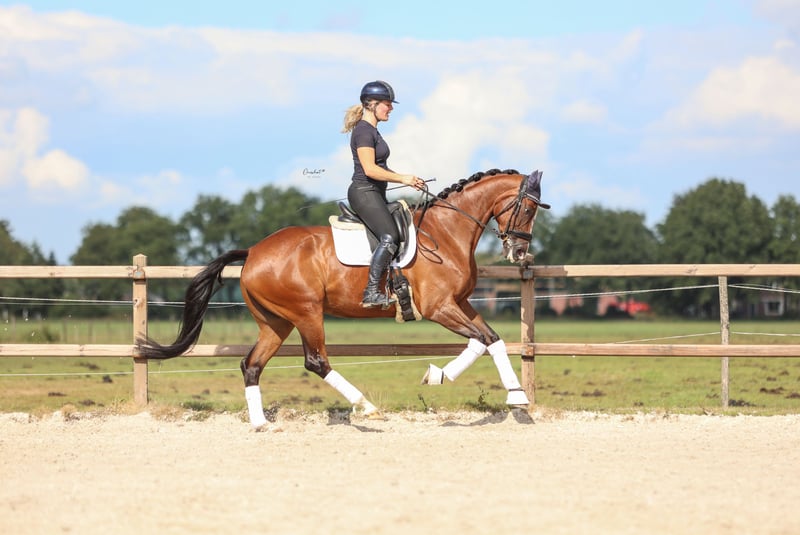 Puerto Montt Uitzonderlijke 5,5-jarige merrie van Ferguson 1.70 m Maak kennis met Puerto Montt, een prachtige 5,5-jarige merrie van Ferguson die werkelijk alles in huis heeft ; kwaliteit, karakter en charisma! Met haar gouden hart en aanhankelijke aard is Puerto een echte lieverd die dol is op aandacht en quality time. Ze is net zo vriendelijk en zachtaardig in de omgang als ze indrukwekkend is onder het zadel. In haar werk schittert Puerto. Ze is met succes uitgebracht op L-niveau, beheerst al met vertrouwen de oefeningen van het M-niveau, en laat zelfs al een nette groene vliegende wissel zien. Ze toont een uitstekende rijdbaarheid en een geweldige bereidheid om te leren. Haar potentieel voor de hogere klassen is duidelijk aanwezig! Haar beweging is alles wat je van een kwaliteitsvol jong paard mag verwachten. Zeer ruime stap, elastische draf en een expressieve, bergop galop! Puerto maakt overal indruk waar ze komt. Ze is makkelijk in de omgang op concours, gedraagt zich voorbeeldig op vreemd terrein en trekt altijd de aandacht in de ring, een echte blikvanger! Ook in de dagelijkse omgang is ze erg gemakkelijk; perfect bij de hoefsmid, makkelijk te laden en reist probleemloos alleen. Kortom, een paard om van te genieten. Met haar talent, instelling en potentieel voor de hogere niveaus behoort Puerto Montt tot de hogere prijsklasse en wordt zij enkel verkocht aan een vijfsterrenhuis. Vraagprijs is iets gewijzigd. Contact +31 6 50 41 26 20 annigje.tolman@hotmail.com