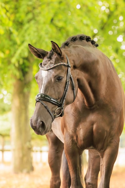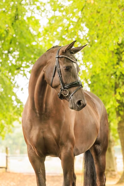 Four Legends x Johnson A gentle, willing mare with a strong hind leg. Princess has a spacious, expressive walk, plenty of rhythm and cadence in her trot, which she also performs very easily, and she also has a good, balanced canter. She is 5 years old and has competed at M2 level. In training, she is familiar with the exercises of Z1 level. She comes directly from the breeder and is ready for someone who wants to develop her further in the sport. Suitable for transitioning from pony to horse, for amateur and professional riders alike. Well-behaved in handling, at the farrier, and during transport. For more information 📞 +31 653837728