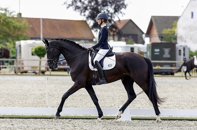🖤Expressieve grote droommerrie met veel uitstraling🖤 ✨Le Formidable x Apache: pure uitstraling gecombineerd met topgenetica! Ongeveer 1,75 m✨ Deze prachtige imposante merrie trekt alle ogen naar zich toe en is daarbij aangenaam aan de teugels en gemotiveerd in training. Naast drie uitstekende basisgangen beschikt ze over een bijzonder stevig fundament, waardoor ze een getalenteerd lange benen dressuurpaard is. Ze is uitstekend te rijden zonder sporen en zweep en is gewend aan buitenritten in het terrein/ bos. Trainingsniveau A/L en binnenkort start ze met vliegende wissels zodra ze zich iets beter kan zetten bij de grote galop. De prijs stijgt na verdere opleiding. Röntgenfoto’s (incl. rug + hals) EN kleine AKU beschikbaar ☑️ Merrie is zeer vriendelijk en staat in een gemengde kudde. Tanden zijn recent, na kleine AKU, fris gevijld (over het hoofd gezien omdat ze zacht in de mond is). Mogelijk is de merrie geschikt voor voltige of parasport, omdat ze echt ongevoelig is voor beweging/aanraking en tijdens turnoefeningen volledig relaxed blijft. Ze is al gepresenteerd op wedstrijden, zelfs deelnemer aan de bekende Pavo Cup (halve finales). Ze toonde zich vooral braaf en expressief. Tot nu toe voorzichtig opgeleid, door haar grootte en lange benen heeft deze elegante merrie nog wat meer tijd en kracht nodig om zich volledig te ontwikkelen en haar volledige potentieel in de sport te kunnen tonen. Grijp snel deze bijzondere parel als compleet pakket, want deze betoverende merrie zal snel iemand erg gelukkig maken. Privéverkoop (investering), graag rechtstreeks contact opnemen met de instructrice (zwanger, ’s avonds goed bereikbaar), die met de verkoop van het paard is belast. 📞017641846151📞 ▶️ Om het ruitertoerisme in het belang van het paard te voorkomen, wordt de instructrice gevraagd om €30 vooraf (!) ongevraagd te overhandigen vóór het uitproberen. Het bedrag wordt uiteraard verrekend bij de aankoop.