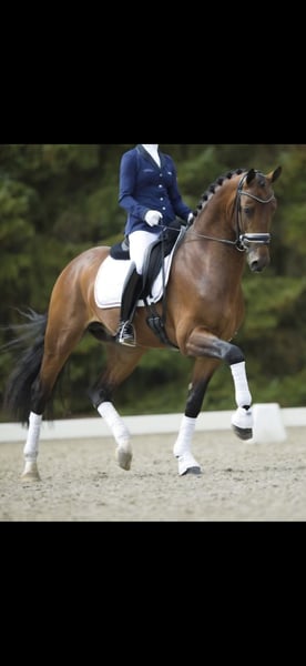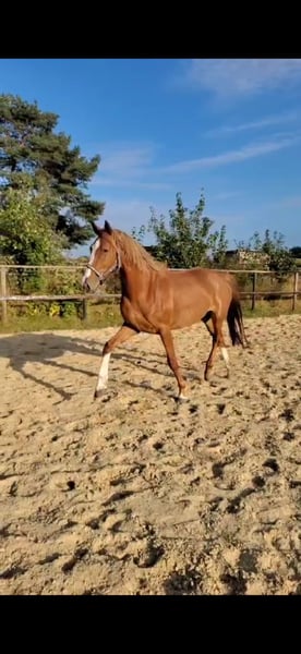 Zum Verkauf steht eine 6 jährige Kwpn Dressur Stute aus Olympus babuschka/Vater Henkie, die durch ihre sehr menschenbezogene Art und ihre positive Arbeitseinstellung überzeugt. Die Stute verfügt über eine dressurmäßige Grundausbildung und befindet sich weiter im Training. Sie war 2 Monate in professionellen Beritt wodurch Sie weiter an Balance,losgelassenheit und Durchlässigkeit gewonnen hat. Unter dem Reiter präsentiert Sie sich angenehm zu sitzen,mit einer positiven Einstellung zur Arbeit. Besonders hervorzuheben sind ihre schwungvollen Gänge,die Sie für den weiteren Aufbau in der Dressur sehr interessant machen. Ein Pferd mit viel Potenzial,das Freude an der täglichen Arbeit macht und sich für den weiteren Sportlichen Aufbau anbietet. Bei der FN ist sie bereits als Tunierpferd eingetragen. Fürs Probereiten nehmen wir 25€ die beim Kauf verrechnet werden, kann aber auf Wunsch auch vorgeritten werden. Neu angepasster Sattel, Trense weiteres Zubehör kann dazu erworben werden. Videos und weitere Bilder schicke ich auf Wunsch gerne zu.