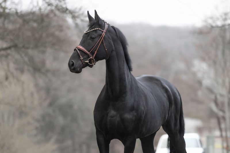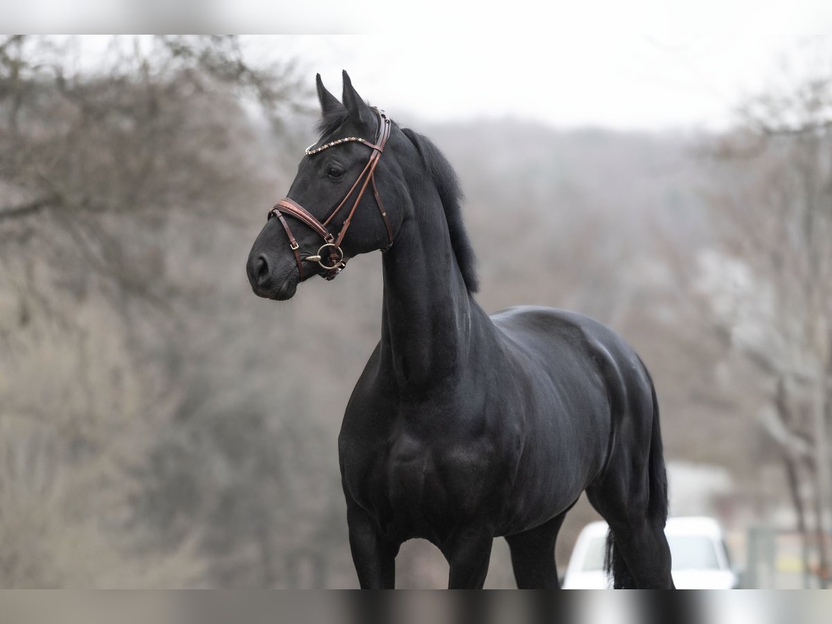 For sale is an impressive 7-year-old, jet-black mare standing approximately 16.1 hh. Compactly built, perfectly proportioned, and with a natural uphill tendency, she embodies the modern dressage type that is ideal for a successful sporting future. Her deep black coat, combined with her presence and charisma, makes her a real eye-catcher — both in daily training and in the show ring. In terms of training, she has confidently reached L-level and shows clear potential for M-level. Her movements at L are well-established, and she already works with a noticeable tendency towards more collection, suppleness, and expression. Her good self-carriage and active, engaged hindquarters provide a solid foundation for further development. She is rideable with finesse and precision, responds sensitively to aids, and remains consistently controllable and pleasant in contact. Her riding feel is characterized by balance, elasticity, and a beautiful connection to the hand. She offers confidence without losing go or dynamism. Thanks to her compact build, she finds it easy to engage and carry herself, which is especially advantageous for advanced movements. She is motivated, eager to work, and eager to be challenged — a mare that wants to grow together with her rider. Her character is as impressive as her sporting qualities. She is affectionate, attentive, and enjoys all forms of attention. She loves being in the spotlight, whether during grooming, presentation, or training. She always interacts in a friendly and clear manner. In a herd, she is compatible with other horses and easily integrated. Even in new situations, she remains calm and well-behaved. She combines the right mix of sensitivity and inner calm — enough ambition for sport but with the necessary serenity for daily handling. Current X-rays are available. This jet-black mare is the ideal partner for ambitious riders seeking a high-quality, finely trained sport horse with potential up to the upper levels. An elegant partner with expression, talent, and the special charm of a true “Black Beauty” — ready to take the next step toward M-level and beyond. If you are interested or have any questions, we look forward to hearing from you — 0176-82205841 A viewing is possible almost at any time. For the introduction and test ride, we charge a flat fee of €30. Of course, there is also the option to arrange transport to bring your dream horse directly to your home.