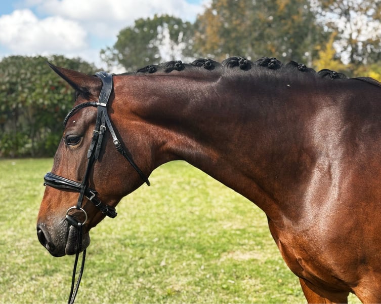 Una bellissima puledra del 2018 da Glamourdale. Movimenti eccezionali, venduta ben al di sotto del suo valore a causa di un infortunio (un cheratoma sul suo zoccolo anteriore sinistro) e ora è ancora poco esperta per la sua età. Ha già avuto un puledro.