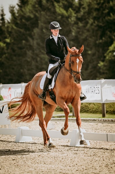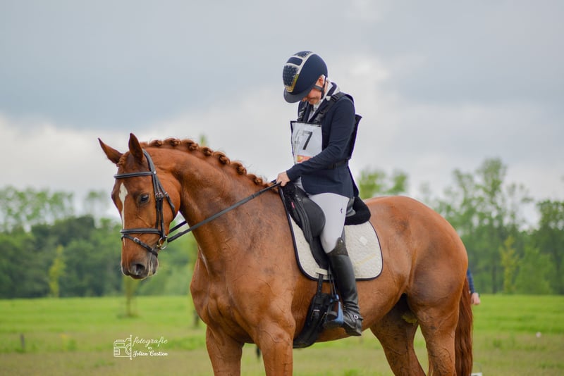 La jument parfaite pour les jeunes cavaliers ! Malheureusement, en raison de choix difficiles, nous proposons à la vente notre jument la plus douce. Olivianne est une jument de 6 ans, par Gemini XX x Zapatero VDL. Nous l'avons entraînée nous-mêmes depuis ses 4 ans, et nous pouvons affirmer avec certitude qu'elle est la jument la plus gentille qui soit. Elle est incroyablement honnête, toujours volontaire, très équilibrée, et convient à tout cavalier. Elle met toujours le sourire sur votre visage — c’est un vrai plaisir à monter ! Olivianne compétitionne en dressage M1, en saut d’obstacles à 1,20 m, et récemment en concours complet* à 2*. En CCI*, elle a été placée presque à chaque fois. Elle obtient régulièrement des scores de 66 % à 72 % en dressage, et elle est très courageuse en phase de cross. Elle peut être montée dans toutes les disciplines avec une simple morsure, sans éperons ; elle répond aux aides de la jambe et ne fait pas du tout la poule. Elle mènera toujours son cavalier en toute sécurité de l’autre côté ! Elle est également très adaptée à la transition du poney au cheval. Elle ne montre aucun comportement de « jument » et est très sociable avec les humains comme avec ses congénères. Elle a récemment passé une visite vétérinaire complète, y compris des radiographies du dos et du cou, et ses tendons ont été entièrement scannés — tout était parfaitement sain. Elle est facile pour le maréchal-ferrant et le vétérinaire, se charge aisément aussi bien dans une remorque que dans un camion, et n’a aucun vice en box. Un cheval qui vous apportera énormément de joie ! Pour voir des vidéos et obtenir plus d’informations, veuillez envoyer un message WhatsApp ou appeler le +33 (0)6 13 74 22 34. Indication de prix : à partir de 55 000 €