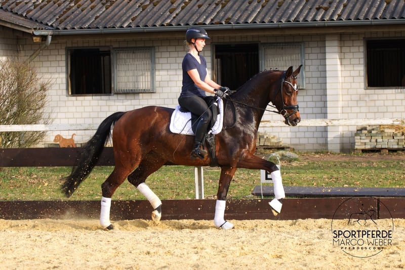 KWPN • Stute • *2019 • ca. 1,72 m ✨ Incognito – Lancet ✨ 💫 Dressurstute mit Herz und Qualität 💫 Diese beeindruckende KWPN-Stute vereint Größe, Eleganz und sportliche Erfahrung. Mit ihren ca. 1,72 m bringt sie viel Rahmen, Präsenz und eine tolle Ausstrahlung mit – ein Pferd, das sofort ins Auge fällt. Abstammend von Incognito aus einer Lancet-Mutter überzeugt sie nicht nur durch ihre interessante Abstammung, sondern auch durch ihre Leistungsbereitschaft und Qualität unter dem Sattel. Bereits mehrfach in L-Dressuren in den Niederlanden platziert, zeigt sie sich motiviert, lernwillig und mit viel Freude an der Arbeit. Mit der Wechselarbeit wurde bisher noch nicht begonnen, sodass weiterhin viel Entwicklungspotenzial vorhanden ist. Hier lohnt sich die weitere Förderung. Besonders hervorzuheben ist ihr Charakter: Diese Stute hat ein Herz aus Gold und ist im täglichen Umgang ein großer Schatz. Sie präsentiert sich sehr unerschrocken, kopfklar und unkompliziert, was sie zu einer äußerst angenehmen Partnerin im Alltag macht. 🩺 Ein sehr guter Röntgen-TÜV liegt bereits vor. Eine tolle Partnerin für Reiter, die Sport, Qualität und einen besonderen Charakter zu schätzen wissen. 📍 Standort: Rotenburg/Wümme 📞 Weitere Informationen gerne unter: +49 173 3013499
