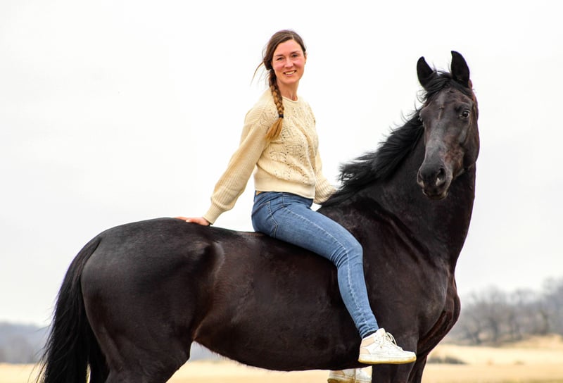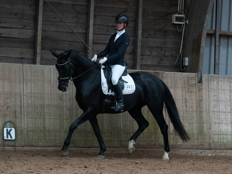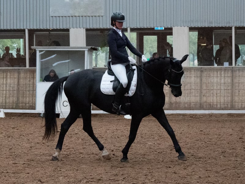 Madison Avenue (hier nennen wir sie Moon 🌛) ist eine super liebe Stute mit drei sehr guten Gängen, viel Geschmeidigkeit und Raum, einem starken Hinterbein mit Talent für die Passage/Piaffe und einem mega zuverlässigen und willigen Charakter. Sie ist 8 Jahre alt, schwarz und 1,64 m groß. Sie ist äußerst vielseitig und hat bereits viel von der Welt gesehen, wobei sie immer stabil und leicht zu reiten ist. Mit ihr macht es großen Spaß, zu Turnieren zu gehen, und sie macht alles einfach (vom Verladen bis zum Gewinnen von Preisen). Mit oft 8en für ihre Gänge sammelt sie jetzt Punkte im M2 und ist im Training bereits weiter. Sie war auch schon auf dem Crossgelände, hat einen 80 cm Parcours fehlerfrei gesprungen (ich selbst bin kein Springreiter), war bei der Endurance (Impuls), bei Puzzle-Ritten und unzähligen Ausritten. Überall ist sie zuverlässig und nicht schreckhaft. Sie ist wirklich bombensicher und natürlich auch gut verkehrssicher. Sie ist die liebste Schmusekatze und steht beim Satteln, Aufsteigen, Scheren, beim Schmied usw. brav still. Ihr Vater ist der Grand-Prix-Hengst Dettori, Sohn von Desperado, der, genau wie Desperado, für die Vererbung eines sehr willigen und zuverlässigen Charakters, viel Qualität und Geschmeidigkeit bekannt ist. Ihre Mutter war international im Eventing CCI2* und im 1,20 m Springen aktiv; diese Qualitäten hat Moon aufgrund der fehlenden Erfahrung des Reiters noch nicht entfaltet. Sie hat jedoch in Cross-Trainings gezeigt, dass sie zuverlässig ist und eine gute Sprungkraft hat. Moon ist ein erfahrenes Coaching-Pferd, das sehr liebevoll und sanft die richtigen Reaktionen an Menschen gibt, um sie auf das hinzuweisen, was sie brauchen. Schließlich hat sie auch Erfahrung in der Freiheitsdressur, und alle Tricks wurden ihr aus einer sehr soliden Basis beigebracht (sie wird also absolut nie betteln oder unaufgefordert etwas anbieten). Sie hat viel Erfahrung mit Natural Horsemanship-Arbeit und kann auch mit einem Knotenhalfter geritten werden. Abstammung: Dettori (Grand-Prix-Sohn von Desperado) x Negro Niveau: M2 Dressur mit Punkten, in Ausbildung für Z Charakter: Super brav, willig und ehrlich – ein echtes Goldstück Begutachtungen: Als 3-Jährige und 5,5-Jährige röntgenologisch und klinisch vollständig ohne Beanstandungen genehmigt, Anfang 2025 eine bakterielle Infektion erlitten und sich davon gut erholt. Als 5-Jährige hat sie ein gesundes, großes Fohlen gehabt. Geeignet als zuverlässiges Lehrpferd und ideal für den Übergang von Pony zu Pferd, wurde bereits mehrmals von Junioren oder Reitschülern geritten. Suchst du ein Pferd, mit dem du wachsen und genießen kannst? Dann ist dies deine Chance. Nur für ein sehr gutes Zuhause. Weitere Informationen oder Probereiten? Schick gerne eine Nachricht oder ruf an unter 0629622411 (bitte bei Nichterreichbarkeit eine WhatsApp-Nachricht senden).