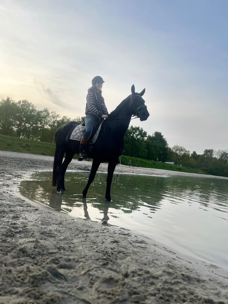 Hermosa y negra yegua de cría con predicado D-OC e IBOP. Padre Everdale, madre Inelrava, una yegua de élite de la conocida y muy exitosa línea Rava de Cees van Etten. A los 3 años, radiológicamente aprobada. Sin defectos en el establo. Regularmente en celo y completamente en buena forma física. La ofrecemos como ‘Maserati’ ya que actualmente es muy sensible bajo la silla. Puede moverse de manera magnífica, tiene experiencia en salto, pero también un carácter fuerte. Ha competido en concursos, fue inmediatamente subcampeona en los campeonatos de Groningen en la categoría L2 y es completamente tranquila en tráfico durante paseos en el campo. No podemos dedicarle el tiempo y la atención que necesita, por lo que lleva varios meses sin hacer nada. La ofrecemos como yegua de cría, una oportunidad de oro para alguien con sensibilidad suficiente para crear un vínculo con ella y, quizás en el futuro, lograr un éxito en la competición.