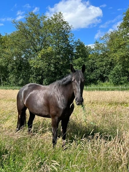 Beautiful jet-black mare with D-OC predicate and IBOP. Sire Everdale, dam Inelrava, an elite mare from the renowned and highly successful Rava lineage of Cees van Etten. Certified via radiographs at age three. No stable vices. Regularly in heat and physically in excellent condition. We are offering her as ‘Maserati’ now, as she is very sensitive under saddle. She can move beautifully, has some jumping experience, but also a strong character. She has competed in events, was immediately reserve champion at the Groningen Championships in L2, and is fully traffic-safe during outdoor rides. We cannot give her the time and attention she needs, which is why she has not been active for a few months. We are offering her as a broodmare with a golden opportunity for someone with enough sensitivity to build a bond with her and possibly bring her out successfully in sport in the future.