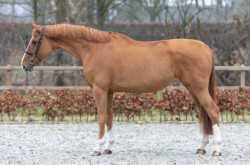 Nelly V is een 8 jarige brave merrie die veel slimheid toont op de sprong. Ze is makkelijk te rijden en denkt altijd mee in het parcours. Ze is op wedstrijd uitgebracht tot het 1.15m en springt graag foutloos. Heeft zeker potentie om hoger te springen. Ook vindt ze het erg leuk om af en toe op buitenrit te gaan. Nelly is vrij van stalgebreken, sociaal naar andere paarden en is makkelijk te laden. Nelly is ongeveer twee jaar geleden klinisch en röntgenologisch gekeurd. Kortom fijne merrie die klaar is om met een nieuw baasje fijne parcoursen te springen.