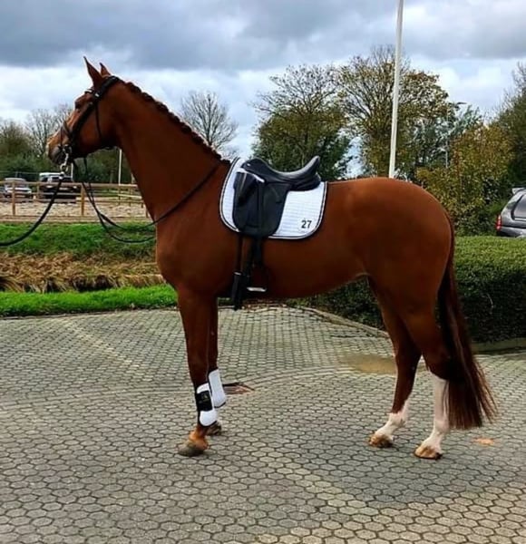 Kapitale en zeer ruig bewegende merrie die als beste merrie van de IBOP in Lisse uit de bus kwam met 81.5 punten. Heeft bij ons ondertussen 2 mooie veulens gehad en is wegens een laat veulen in 2025 niet gedekt. Ze komt uit een lijntje met veel sport en predicaten. Oma Daisy, moeder Ivory en zo nog een aantal anderen uit het lijntje zijn bij ons te zien en zijn paarden die door iedereen bereden kunnen worden - jong en oud - ervaren en onervaren. Als 2.5 jarige 100% goed op de foto inc. rug/hals, mag nogmaals gekeurd worden k.k. Door een spierscheurtje in de (verkorte spier) onderhals heeft ze moeite met de aanleuning / balans. Te koop als fokmerrie of recreatiepaard, na 3 jaar niet rijden weer onder het zadel geprobeerd en topbraaf (whatss app voor filmpjes), niet schrikachtig, goede looplust. Zou een fantastisch paard zijn voor buitenritten en zou ook een man op passen qua maat. Paard met kwaliteit en een super karakter wat zeker geschikt is voor de fokkerij! Haar moeder Ivory (Elite, ibop, prok, sport Z2 dressuur, NMK) was in Nederland 5e van de kampioenskeuring als 3 jarige en liep als jong paard in de halve finale van de Pavo Cup en in verschillende jonge paardenrubrieken eindigde zij hoog. Oma Daisy mocht als 3 jarige ook naar het NMK en is elite, prok, ibop, sport ZZ zwaar. Zowel de moeder Ivory als oma Daisy staan nog bij ons op stal. Ivory komt na het veulenen ook beschikbaar, Daisy is in het bezit van een familie als betrouwbaar leerpaard.