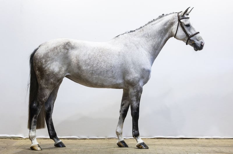 Very beautiful and impressive grey. This horse has 1.30m experience. Nadine has a good attitude and more blood than her appearance suggests. She has a big canter, is easy to ride towards the jump, and gives the rider a good feeling. Not spooky and with enough scope. Suitable for a semi-professional rider who can further develop and strengthen her. As a 5-year-old, she competed in the KWPN Championships and reached the final. Sire Jacadello (Cascadello I x Lordanos) competed at 1.20m level and comes from a strong Holsteiner line. Through Casall (1.60m), he brings technique, attitude, and modern sport qualities. His first offspring are competing up to 1.35m level. Dam The dam, Grace-L, is a daughter of Bustique (1.45m) and carries proven sport genes through Indoctro (1.40m). Damline The damline is strong and broadly built. Among others, Jessica (1.40m) appears from the direct line. In the second line, horses such as Esgracia (1.40m) and Bogracia MB (1.35m) can be found. Further, there are multiple horses at 1.30m–1.35m level, such as Kazan, Troyko L, and Furhy L. At higher levels, we see Alida Nike (1.55m), Hamont (1.50m), and Courville L (1.50m). The line demonstrates a consistent production of sport horses from 1.30m up to 1.55m level.
