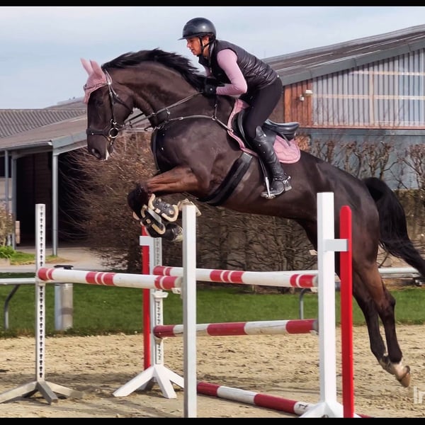 Ik verkoop mijn 8-jarige, ongeveer 1,65 m grote, zwartbruine merrie van Il est Balou x Olivi. Niki is ongeveer 3,5 jaar geleden bij mij gekomen en ik heb haar gereden en opgeleid. Ze heeft plezier in de dagelijkse training en rijdt ook prettig dressuurmatig, met enkele piaffe- en zijgangen onder de knie. Ik heb haar voorgesteld in springklassen A en L tot L-springen. Eind vorig jaar was ze succesvol in een A**-springen en geplaatst in L-springen voor jonge springpaarden. Ze kan zowel in het bos alleen als in een groep gereden worden – ook als allrounder zeer geschikt. Vanwege de geboorte van mijn kind zoek ik een 5-sterren thuis, bij voorkeur bij iemand met ervaring, omdat ik haar niet meer volledig kan bieden wat ze verdient. Ik zoek iemand die haar karakter en haar hart van goud waardeert. Ze is van nature vrij onderdanig en kan zowel met merries als met hengsten buiten staan. Regelmatig gevaccineerd, met tandarts, hoefsmid en fysiotherapeut verzorgd. Niki had bij aankoop al een gezondheidsverklaring, die haar tot nu toe geen problemen heeft opgeleverd, daarom wordt ze onder de marktwaarde aangeboden. Röntgenfoto’s uit 2022 en 2024 zijn beschikbaar; een nieuwe keuring kan op eigen kosten worden gedaan. Gelieve geen vragen over beschikbaarheid of betaling in termijnen – dat is voor mij geen optie! Bij serieuze interesse hoor ik graag via telefoon op 0178/9178942 en ik geef graag meer informatie. Voor een proefritten wordt €30 gevraagd, wat bij de aankoop uiteraard wordt verrekend.