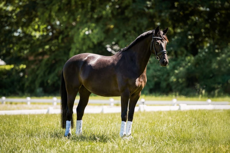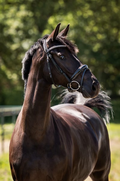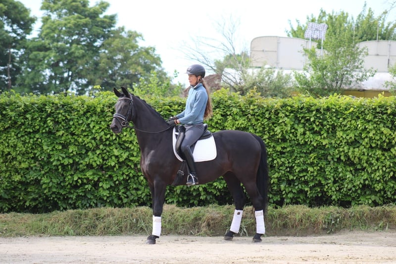 Name des Pferdes: Mylinda Sportname: Mirage Geschlecht: Stute Geburtsdatum: 25-6-2017 Farbe: Schwarz Zuchtverband: KWPN Stockmaß: 164 cm Abstammung: Glock’s Toto Jr N.O.P x Dorado Abzeichen: keine MERKMALE - Eine ansprechende Stute, die gut im Rechteckmodell steht. - Sehr schönes Pferd für die Disziplin Sport Dressur. - Leichte Kopf-Hals-Verbindung, korrekte Halsrichtung. - Gut verlaufender und anschließender Rücken/Lendenbereich. - Feine und harte Beinstruktur. BEWEGUNG - Schritt: Sehr raumgreifender Schritt mit viel Takt und Raum in der Schulter. - Trab: Sehr raumgreifender und tragender Trab mit viel Abdruck und Schwung. - Galopp: Weitläufiger Galopp mit viel Abdruck und Talent zur Versammlung. Zusätzliche Informationen: Erwartungswert im Sport: Leichte Tour Prix St. George. Aufgrund der umfangreichen Möglichkeiten dieser Stute ist sie sowohl für den Sport als auch für die Zucht einsetzbar. Sie hat alles, um erfolgreiche Nachkommen zu bringen, die gut verkäuflich sind und im Sport vorgestellt werden können. Aufgrund privater Umstände wurde diese Stute erst spät auf höherem Niveau trainiert, ab November 2024. Die Stute entwickelt sich sehr gut und ist mittlerweile auf M2-Z1 Niveau vorgestellt worden. VERHALTEN: - (Stall) Mängel: Keine - Untersuchungen Röntgen und klinisch: Röntgen 21-7-2020 - Gesundheitsbeschwerden/Operationen: Keine - Charakter: Feiner und kooperativer Charakter, möchte gerne arbeiten. - Verladen: Sehr einfach zu verladen, auch zusammen mit anderen Pferden auf den Trailer. - Gut gebaute Stute mit ansprechenden aufwärts gerichteten Bewegungen, angenehm im Umgang auch mit anderen Pferden. - Ist leicht nachzureiten, auch durch einen Amateur. KONTAKTDATEN: Olga Boucher, +49 1573 2687370 (bei Interesse an einem Besichtigungstermin) Yvonne Leenders, 06 57 32 25 35 (Eigentümerin)
