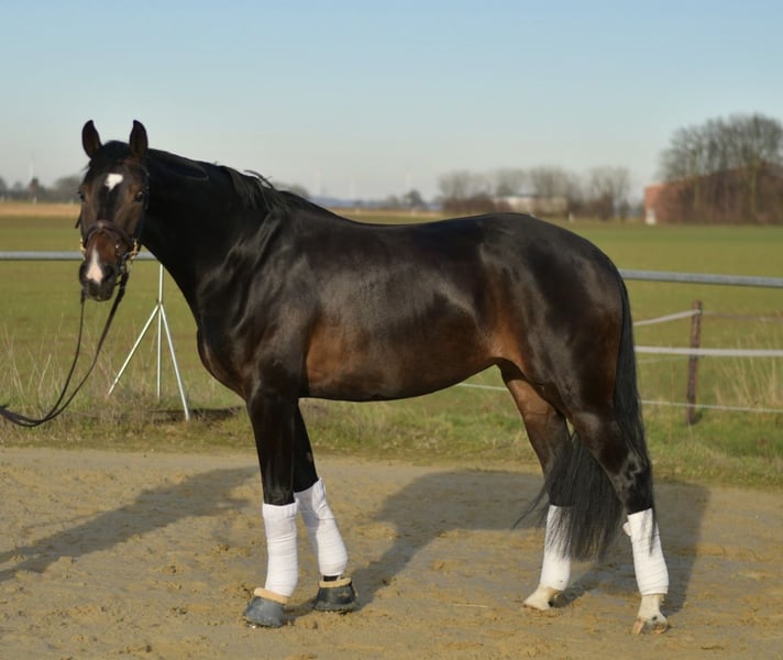 Discover our stunning dark bay KWPN mare born in 2017 – a true gem that will win your heart instantly! With an impressive height of approximately 16.1 hh and a compact build, she is not only a striking eye-catcher but also an ideal choice for riders transitioning from other disciplines. Her three beautiful basic gaits are the result of natural talent and training, making her a perfect partner for both beginners and advanced riders. This mare has a big heart and is incredibly comfortable to ride, providing pure enjoyment both in the saddle and during ground work. Her sensitive and affectionate nature makes her the perfect cuddle horse, always wanting to be close to her handler. She is not only a valuable addition to your stable but also a loyal companion. ### **Special Offer:** Secure a **5% discount** on the purchase price with immediate pickup! ### **Test Ride Opportunity:** Take advantage of the chance to test our horse for one week! This trial period can be supervised by experienced trainers. You will have the opportunity to combine riding lessons and testing sessions. Please note that a trial fee applies, which is not deducted from the purchase price. ### **Trial Riding:** Would you like to meet the mare in person? We are happy to arrange a viewing and trial ride. The cost for a pre-ride or trial session is €30 per person. Don’t hesitate to contact us for more information or to schedule an appointment. You won’t want to miss this unique opportunity!