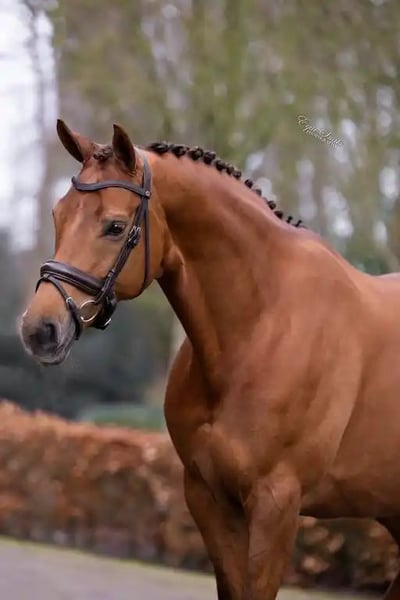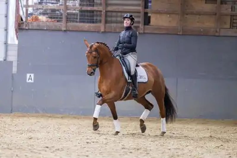 Nice 9-year-old mare by Morricone x Jazz for sale. Morribelle has been under saddle for three years and is currently classified at Z2 level. She remains calm and focused during rides and competitions. When you ride her confidently and engage with her, she can become quite enthusiastic. In handling, she is very sweet and also social with other horses. She can easily stand alone in the stable without stress. She is also accustomed to riding alone or in a small group through the woods. She is suitable for a somewhat insecure rider but not for a complete beginner. Price: €32,500 excluding VAT. Viewings in Beilen (Drenthe). Tel: +31 630223977