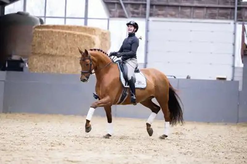 Schöne 9-jährige Stute von Morricone x Jazz zu verkaufen. Morribelle ist seit drei Jahren unter dem Sattel und ist derzeit auf Dressurprüfung Z2 eingestuft. Sie lässt sich beim Reiten oder auf Turnieren nicht aus der Ruhe bringen. Wenn du locker mit ihr reitest und sie ihren Job machen lässt, wird sie etwas energischer, wenn man mehr an sie arbeitet. Im Umgang ist sie sehr lieb und auch sozial mit anderen Pferden. Sie kann problemlos auch mal alleine in der Box stehen, ohne Stress. Außerdem ist sie an Waldritten gewöhnt, sowohl alleine als auch in der Gruppe. Sie eignet sich für einen etwas unsicheren Reiter, ist aber nicht für absolute Anfänger geeignet. Preis: 32.500 € ohne Mehrwertsteuer. Besichtigung möglich in Beilen (Drenthe). Tel.: +31 630223977