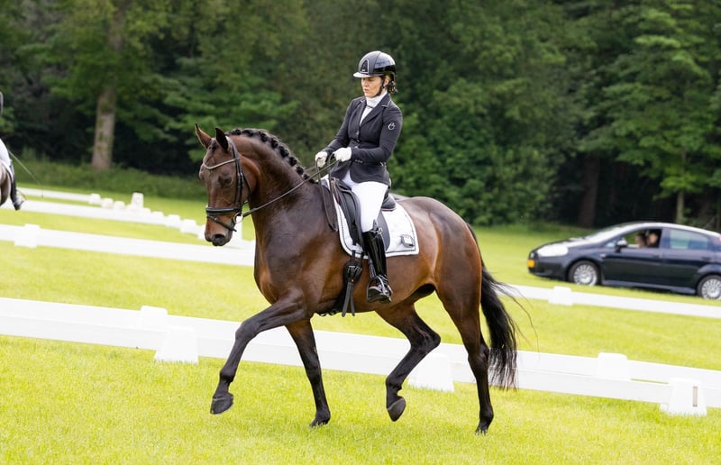 Sehr angenehme Stute zu verkaufen Prix St. Georges gekört Eine äußerst angenehme Reitstute, leicht zu handhaben und sehr bequem im Sitz. Auch geeignet für Junioren oder junge Reiter. Sie befindet sich noch im Besitz des Züchters, hat als Jungpferd erfolgreich an Young Horse Competitions teilgenommen und konnte in der regulären Turniersport-Erfahrung auf verschiedenen Turnieren sammeln, von kleinen bis hin zu Meisterschaften. Sie ist ruhig im Stall und sozial im Umgang mit anderen Pferden. Sie reist problemlos und ist brav bei Turnieren.