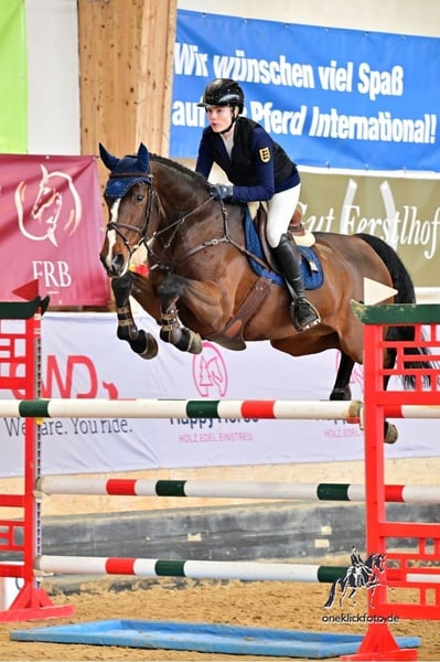 This pretty sporthorse impresses with her excellent attitude and care at the jump. She is equipped with the necessary Go, exceptional rideability, and a practical canter. She is ideally suited as a children’s or junior’s horse. Successful up to 1,40 m.