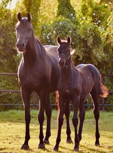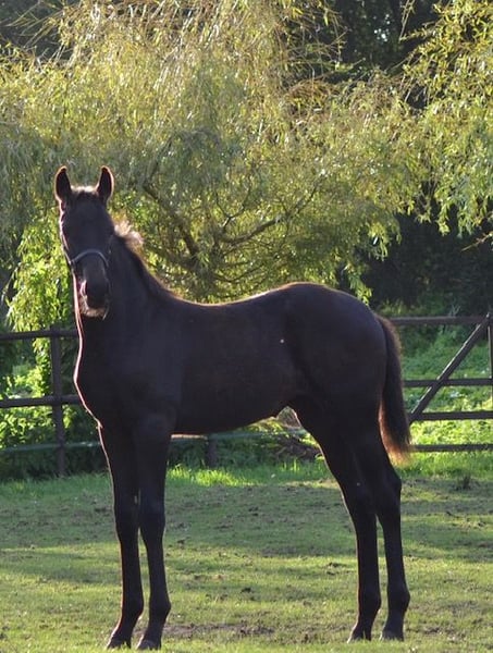Księżniczka źrebak jest całkowicie czarna, bez znaków. Jest wysoka i długonoga. To bardzo luksusowy typ z dobrymi chodami. Ma imponujący kłus, z dużym potencjałem do sportu i hodowli. Drugie źrebię w filmie również jest na sprzedaż. Bardzo trudno nam się rozstać, ale z powodu braku miejsca niestety nie możemy zatrzymać wszystkiego. Mamy nadzieję znaleźć dobre miejsce, gdzie jej umiejętności będą mogły się w pełni rozwinąć. To źrebię jest zarezerwowane!