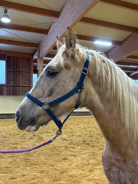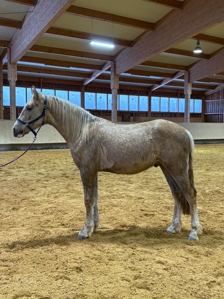Zum Verkauf steht ein wunderschöner Leonharder Wallach der F2-Generation, geboren im Jahr 2024. Dieser elegante Palomino besticht durch sein freundliches Wesen und seine ansprechende Erscheinung. Mit einem aktuellen Stockmaß von 150 cm ist er perfekt für den Freizeitbereich geeignet und überzeugt durch seine Vielseitigkeit und sein angenehmes Temperament. Quefiro wächst artgerecht im Herdenverband auf und kennt Tierarzt sowie Hufschmied. Der junge Wallach ist bestens auf den Alltag vorbereitet und freut sich darauf, seine neue Familie kennenzulernen. Ob für Kuscheleinheiten, Spaziergänge oder einfach als treuer Begleiter – dieser Leonharder ist der ideale Freizeitpartner. Der Leonharder ist bekannt für seine robuste Konstitution, seine vielseitigen Einsatzmöglichkeiten und sein freundliches Wesen. Mit seiner charmanten Ausstrahlung und seinem angenehmen Charakter ist dieser Wallach eine echte Bereicherung für den Freizeitbereich. Bei Interesse und für weitere Informationen stehe ich Ihnen gerne zur Verfügung. Besichtigung und Kennenlernen nach Vereinbarung möglich.