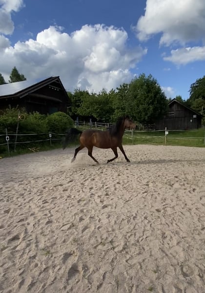 We are selling our beautiful mare as a leisure horse. Features: - Lewitzer mare with Arab blood - 18 years old - 148 cm tall - Not a weight carrier (up to 65 kg) - Spavin (no issues for leisure riders) We are looking for a great home in a paddock setup with plenty of year-round freedom to move. The mare is easy to feed, low in rank, sensitive, robust, energetic, and absolutely well-behaved. Since her spavin diagnosis, she has been provided with supplemental feed and has had no problems as a leisure horse since then. She is a loyal companion for hours of trail rides and walks, goes alone and in groups into the terrain, is very people-oriented, and is easy to shoe/load. She is ridden with a Western saddle and a fleece saddle, as well as with and without a bit (equipment can be sold with her). The mare is regularly dewormed and vaccinated, and she sees the farrier and dentist. We can imagine someone in their youth or young adulthood as a great fit for her; she is not suitable as a children's pony due to her sensitive nature. Further information is available upon request or in person :)
