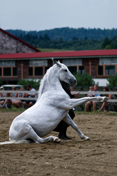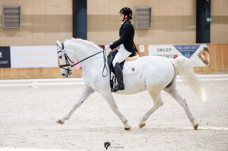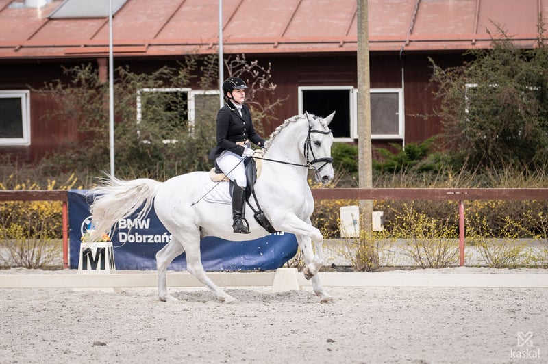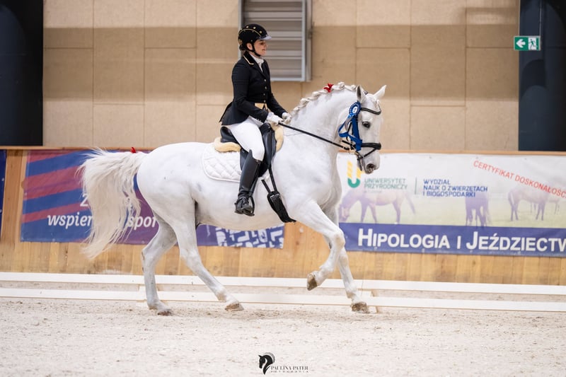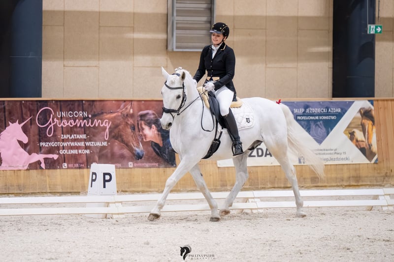 Piękny, urodziwy wałach do ujeżdżenia o niezwykłym ruchu. Wzrost 161 cm w kłębie. Siglavy jest bardzo doświadczonym koniem, robi elementy takie jak: Piaff, Pasaż, piruety w galopie, cięgi, zmiany nóg...elementy CC. Wałach nadaje się do przygody z pierwszymi startami w zawodach z apetytem na więcej. Dodatkowo zna sztuczki takie jak stęp Hiszpański, kładzenie się, siedzenie, leżenie, stawanie dęba... Jest to idealny koń dla doświadczonego jeźdźca jak i ambitnego amatora, który chce czerpać przyjemność z jazdy konnej i czasu spędzonego z nim. Koń jest piękny, przyjacielski, spokojny we wszystkich czynnościach (zadokowanie, kucie, siodłanie, transport, tereny...). Lokalizacja: Polska, województwo podkarpackie Charakter i temperament: - Koń profesor - Dla dziecka - Dla początkującego - Dla doświadczonego - Chodzi w tereny - Przyzwyczajony do psów Inne cechy: - Grzeczny w transporcie - Przyzwyczajony do kowala - Kuty - Prawidłowe kopyta - Umie pracować z ziemi - Pod opieką fizjoterapeuty - Posiada aktualny TUV