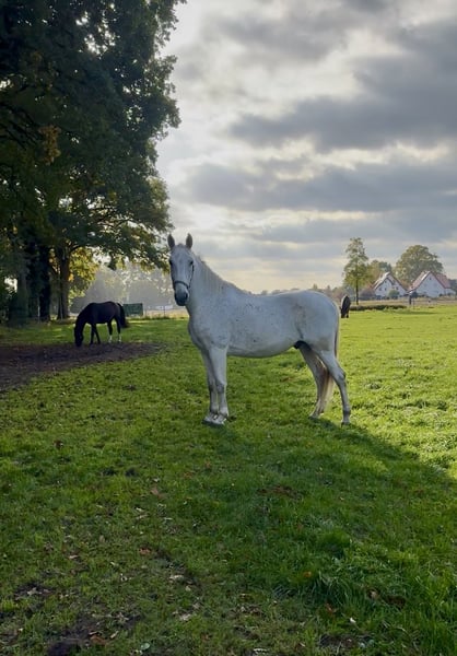 Beste Lipizzanerliefhebbers, Na lang nadenken heb ik besloten om een nieuw thuis te zoeken voor mijn 13-jarige Lipizzaner ruin (Favory Figaro), genaamd Willi. Willi is een zeer gevoelige en uiterst intelligente ruin. Hij wil het liefst elke dag gewerkt worden en heeft een zeer zekere en empathische ruiter nodig met een fijne hand. In de omgang heeft Willi een gouden karakter. Hij laat zich door kleine kinderen leiden en houdt van knuffelen; hij zou nooit bijten of trappen. Bij de smid is hij de rust zelve. Onder het zadel toont hij veel potentieel en is hij zeer werkwillig. Hij is echter extreem gevoelig en reageert op elke kleine fout van de ruiter. Daarom is hij absoluut afhankelijk van een ervaren, zelfverzekerde ruiter met een fijne, nachgiebige hand en paardenkennis. Willi gaat in de groep of met z’n tweetjes het buitengebied in en is daar goed handelbaar; hij wordt niet paniekerig, zelfs niet als de andere paarden nerveus worden. In de zomer graast Willi overdag samen met de andere ruin op een grote wei en ’s avonds gaat hij de stal in. In de winter staan de paarden overdag op het paddock, waar ze de hele dag hooi tot hun beschikking hebben. Willi wil zich overdag bewegen en heeft het liefst de hele dag buiten. In de eerste stal waar ik met Willi stond, had hij slechts vier uur dagelijk “uitloop” en was hij ontevreden; hij sloeg tegen de boxwanden. Voordat Willi bij mij kwam, had hij al meerdere eigenaren gehad die allemaal met hem overbelast waren. Het heeft lang geduurd voordat ik zijn vertrouwen heb gewonnen en totdat Willi weer plezier in het werk kreeg. Nu zoek ik een plek waar dit geweldige paard gewaardeerd en geliefd wordt. Omdat ik erg aan hem gehecht ben en het geen noodgeval is, verkoop ik alleen als alles klopt. Plaats gaat boven prijs. Hij wordt verkocht omdat ik in de dagelijkse verzorging niet de tijd kan geven die hij verdient. Voor meer informatie graag persoonlijk contact. Willi staat in de Kreis Gütersloh en neemt zijn volledige uitrusting mee. Bij interesse graag telefonisch of via WhatsApp contact opnemen via 015128016758.
