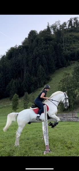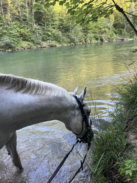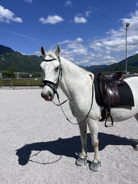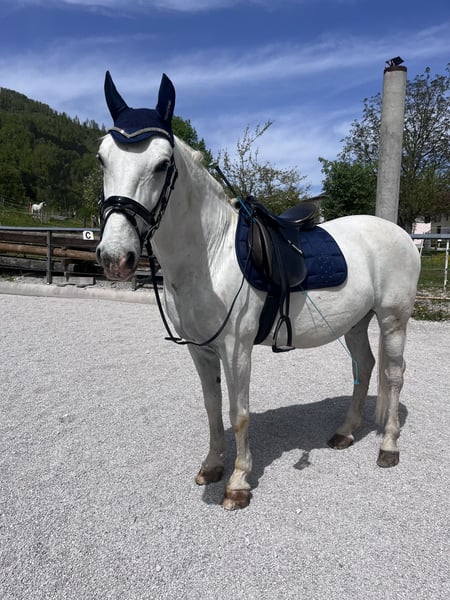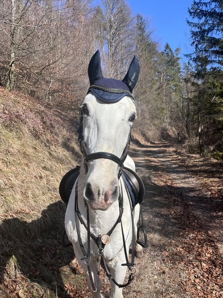 Incitato Dani, affectionately called Lippi by me, is a 2011-born Lipizzaner gelding. I ride him recreationally in the arena and work with him from the ground. In the arena, he is not easily spooked and shows a solid basic education. He particularly enjoys groundwork and is always eager to learn new things. Occasionally, we also jump over small obstacles, although we both lack experience and confidence in this area. Currently, Lippi is housed in a paddock box and spends his days with his equine friends in a paddock or on the pasture. He is an extremely social horse, loves to play with others, and gets along well with them. In the hierarchy, he tends to stay in the middle to lower range. Lippi has been regularly vaccinated, dewormed, and his teeth have been consistently cared for. He is shod every 6-8 weeks. All four hooves are shod, as living without shoes has proven impractical for him (at least with me). On trail rides, Lippi is somewhat insecure and spirited and likes to follow the lead of other horses, but riding alone is also not a problem. In the past two years, we have been on four-day trail rides, during which he behaved exemplary. He also goes into water and loads onto the trailer. Lippi needs a person he can rely on. Once he has that, he will go through thick and thin with you. He has his own mind but is a truly wonderful guy who always brings a smile to your face. Due to personal changes, I have decided to find him a new home. He wants to be encouraged, and I am currently unable to provide that. However, since he is very dear to me, the right home is more important than the price! He is not a beginner's horse, as he needs a person who can give him confidence. Lippi is being sold with all his equipment (dressage saddle, all-purpose saddle, bridle, blankets, etc.).