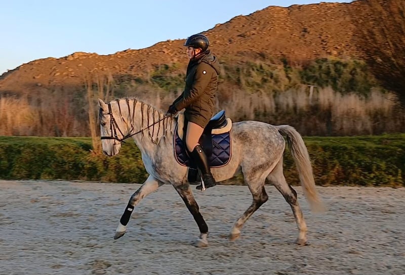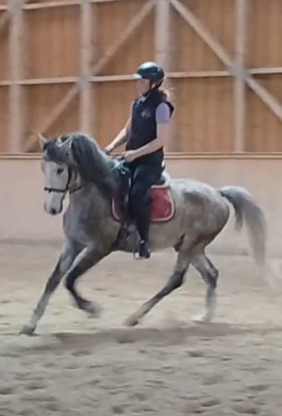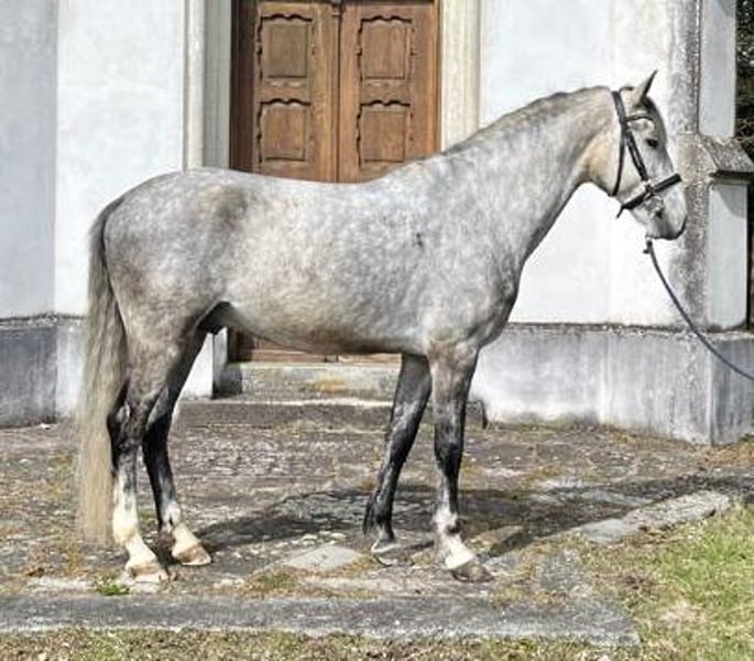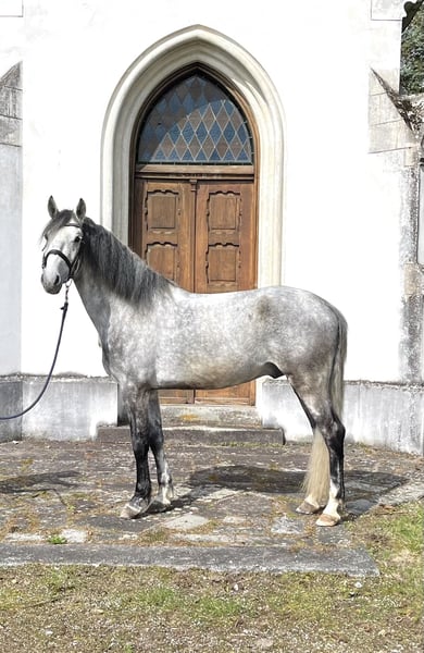 A very friendly and people-oriented 7-year-old Lipizzaner gelding, standing at 15.5 hh, trained in dressage up to A-level, with L-level lessons started. Absolutely well-behaved and uncomplicated to handle. He is familiar with cavaletti work and small jumps, although he has not been further trained in these areas. He is suitable for advanced riding students in lessons, always very attentive and sensitive to rider aids. We are reducing our riding school operations, which is why we are offering him for sale. This is not a distressed sale. He was licensed as a stallion with very good scores and has outstanding basic gaits. He is very gentle and easy to handle, suitable for trailer loading and hacking out. He has already participated in several off-site training sessions. He is consistently diligent and eager to work, but not suitable as a beginner's horse. Currently barefoot, which works very well. He is stabled at night and turned out during the day in a mixed herd, with very good compatibility with other horses.