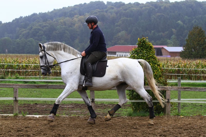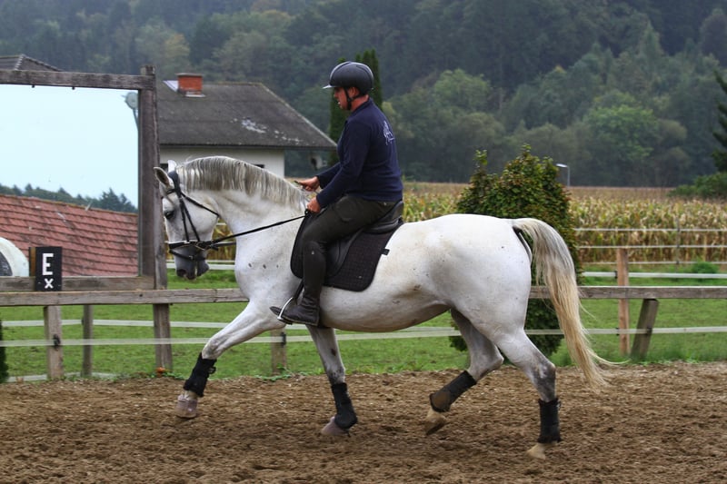 Maestoso Chiara è una cavalla Lipizzana imponente e di grande taglia, che a soli 6 anni è all'inizio della sua promettente carriera. Addestramento: È stata appena montata e si dimostra estremamente volenterosa e intelligente. Lavorare con lei è molto divertente, poiché comprende rapidamente i collegamenti ed è sempre motivata. Fondamenta: Conosce già il doppio longher e ha familiarità con tutte le manovre di base. Ha gli zoccoli anteriori ferrati. Origine e potenziale La sua genealogia indica un alto potenziale sia sotto sella che nel driving. Padre: Maestoso Baro (stallone Lipizzano nero) Nonno materno: Conversano XXIV-21 (stallone Lipizzano nero) Linea di successo: Suo padre e suo nonno sono attivi con successo nel driving FEI, il che suggerisce una forte costituzione, volontà di prestazione e un temperamento equilibrato. Maestoso Chiara è un cavallo per cavalieri o conducenti ambiziosi che cercano una cavalla di alta qualità da formare. Ideale per gli amanti della razza e per coloro che desiderano sviluppare un cavallo sportivo versatile.