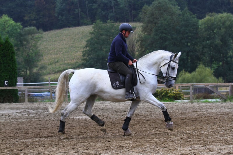 Maestoso Chiara es una impresionante y de gran tamaño yegua Lipizzana, que con sus 6 años se encuentra al inicio de su prometedora carrera. Educación: Ha sido montada recientemente y se muestra extremadamente dispuesta a aprender e inteligente. Trabajar con ella es muy divertido, ya que comprende rápidamente las conexiones y siempre está motivada. Fundamentos: Ya conoce la doble longe y está familiarizada con todos los manejos básicos. Tiene herraduras en las patas delanteras. Línea de sangre y potencial Su linaje sugiere un alto potencial tanto bajo la silla como en la conducción. Padre: Maestoso Baro (Caballo Lipizzano negro) Madre: Conversano XXIV-21 (Caballo Lipizzano negro) Línea de éxito: Su padre y su abuelo son exitosos en el deporte de la conducción FEI, lo que sugiere una fuerte constitución, voluntad de rendimiento y un temperamento equilibrado. Maestoso Chiara es un caballo para jinetes o conductores ambiciosos que buscan una yegua de alta calidad que puedan formar. Ideal para amantes de la raza y aquellos que desean desarrollar un caballo deportivo versátil.