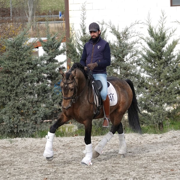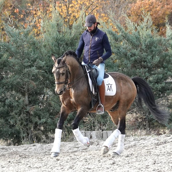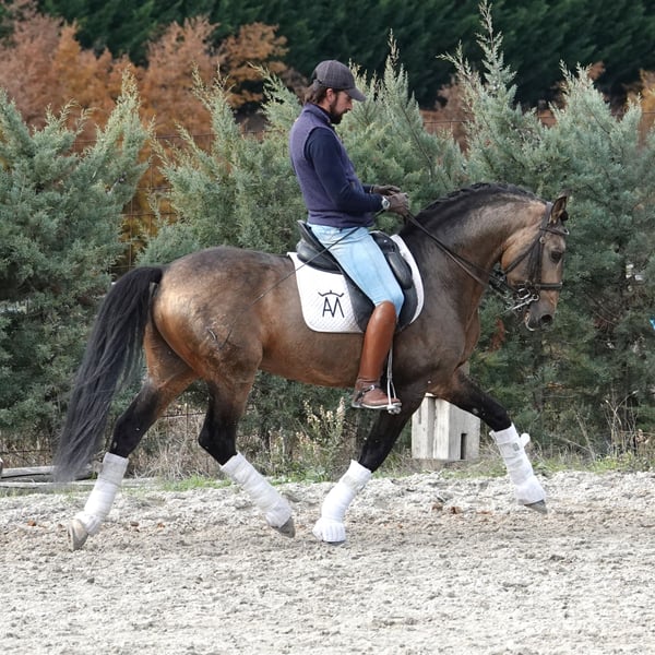 Lusitano born in 2016, ideal for riders who understand dressage as an experience of harmony, sensitivity and true connection with the horse. From the first steps, he offers balance, calmness and a natural feeling of ease that invites the rider to sit, breathe and allow the movement to flow. His natural scope and supple use of the back make the work comfortable and enjoyable, especially for a rider who values quality of movement and feeling under the saddle. It is easy to imagine yourself riding him: a soft contact, honest responses to the aids and a quiet confidence that allows you to focus on rhythm, balance and the simple pleasure of riding without tension or haste. He has been trained progressively and respectfully, with great care for both his physical and mental development, never rushing the process. A horse who continues to develop while maintaining a cooperative attitude and a very positive work ethic. Particularly suitable for a discerning amateur rider looking for a partner to enjoy daily training, progress with confidence and experience dressage from a place of harmony and wellbeing. Complete videos of the horse working under saddle and in liberty are available and highly recommended to fully appreciate his movement, balance and character. Watching the video is the best way to understand the feeling this horse transmits. Further information, additional videos and trial rides available upon request.
